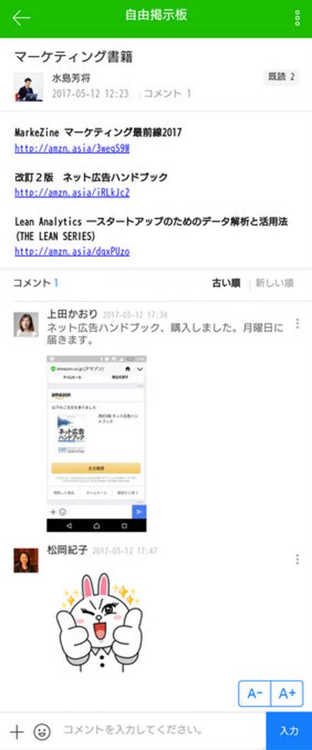 LINEでやりとりをすることに抵抗がある社員、LINEというプライベートゾーンで仕事のやりとりをさせることに抵抗のある会社、にとってどちらの問題も解決してくれそうです。