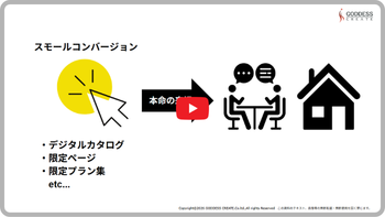 いきなりの相談会や見学会はハードルが高い。当たり前のようで盲点でした。まずはデジタルカタログや限定ページなどの「スモールコンバージョン」を設定し、お客様とのタッチポイントを増やすことから始めます。(工務店 経営者)