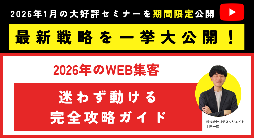 この動画は、2026年1月29日に開催したゴデスクリエイトユーザー会・WEBマーケティング塾の内容です。 会員限定のセミナーですが、好評につき期間限定で視聴いただけます。 |