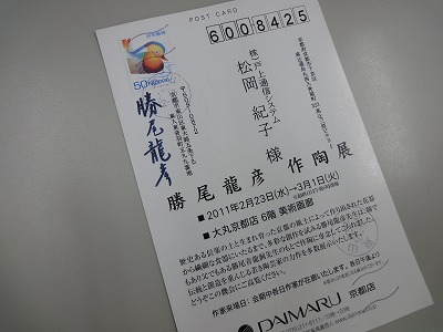 ホーム 今日の現場から 作陶展のお知らせ 前の記事 一覧 次の記事 作陶展のお知らせ 公開日:2011/02/16(水) 更新日:2011/02/17(木) 京都の文化 会社に戻ったら、「!」のお知らせが 私の机の上に届いていました。 勝尾龍彦さんの作陶展です。 この度は、我が社から徒歩5分の 大丸京都店6階の美術画廊にて開催されます。 今年初の龍彦さんの作陶展。楽しみです! 前の記事 一覧 次の記事